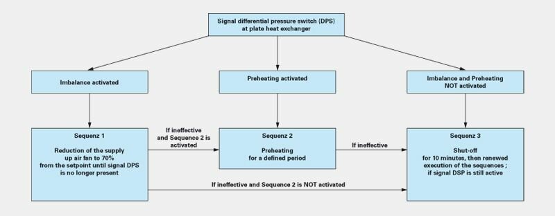 В зависимости от настроек, выполненных во время ввода в эксплуатацию, а также используемых аксессуаров, доступно до 3 последовательностей для размораживания пластинчатого теплообменника с противотоком.